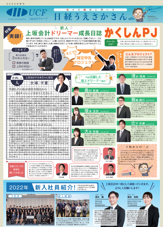 上に載せた画像は、過去の事例でも紹介した税理士法人上坂会計様のニュースレターです。上坂会計様は、この方法でスタッフの写真を撮りためて、いろいろな場所に入れて使っています。